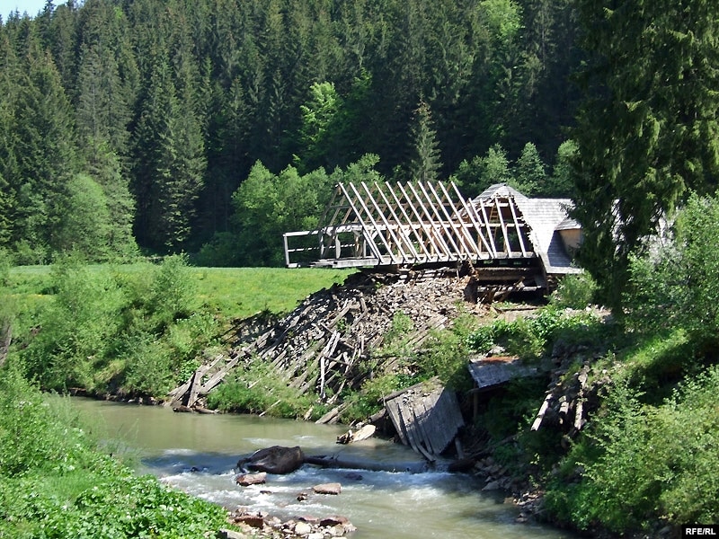 Бокораш із сумом показує на напівзруйновану дамбу. Її почали будувати наприкінці 18-го століття й за 40 років ледве впоралися з роботою. Саме тоді дамба була складним комплексом будівельних конструкцій, технічних вузлів і механізмів. Завдяки ним піднімали ворота, щоб дати шлях воді й плотам. Повені 1998 та 2001 років зруйнували те, що стояло століттями.