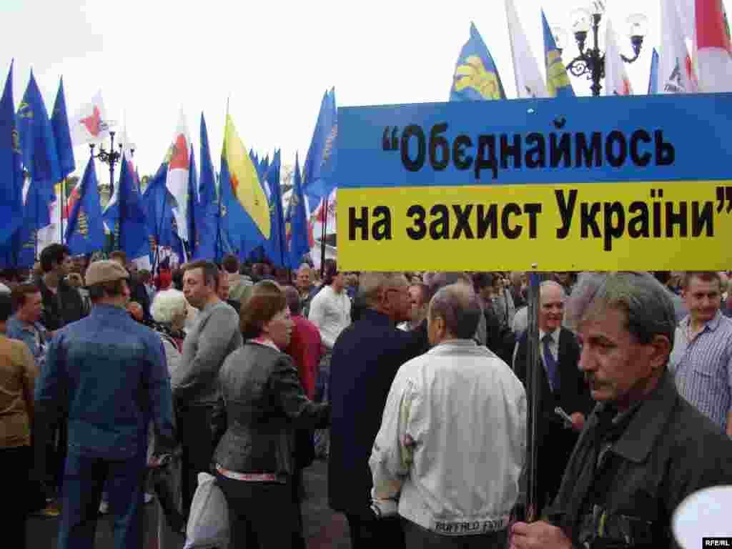 Мітингувальники називають антиукраїнською гуманітарну політику влади та виступають за її припинення, а також закликають захищати суверенітет та територіальну цілісность України.