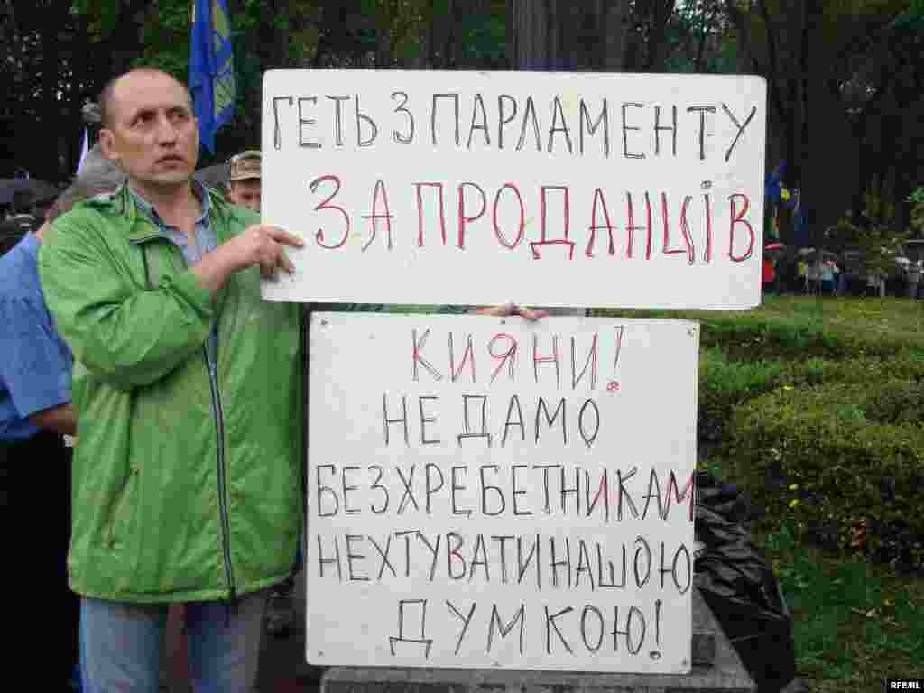 Близько трьох тисяч прихильників опозиційних сил мітингують у Маріїнському парку біля будинку парламенту проти політики Президента Віктора Януковича.