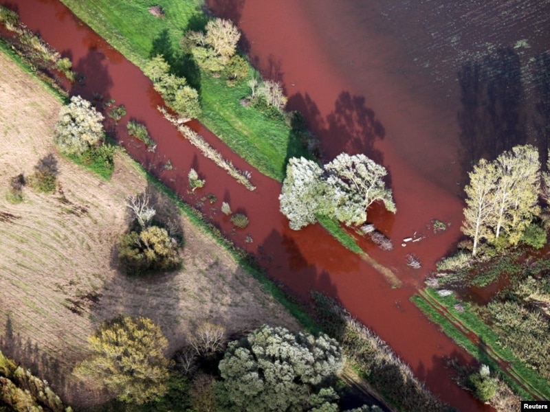 У гирлах річок Марцал і Раба, які є притоками Дунаю на північному заході Угорщині, з річкових катерів аварійні служби ділодобово сиплють у воду гіпсовий порошок у великих кількостях а також намагаються знешкодити токсичні речовини соляною кислотою.