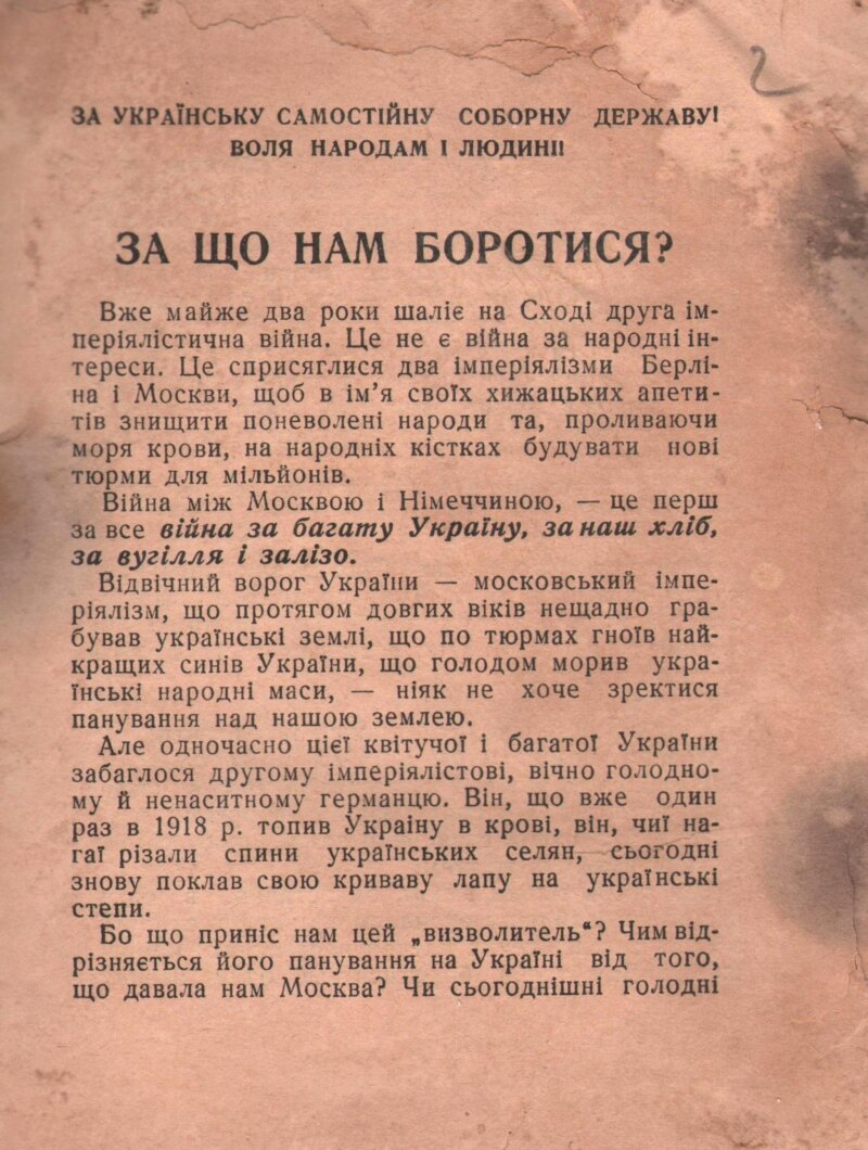 На виставці представлені також відозви і публікації пізніших часів, ОУН і УПА, в яких людей закликають боротися за незалежність держави Україна.