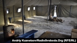 В іншому кінці Луганська бійці МНС розгорнули намет. Їжі тут не дають, але всередині намету є дві пічки-буржуйки – можна погрітися.