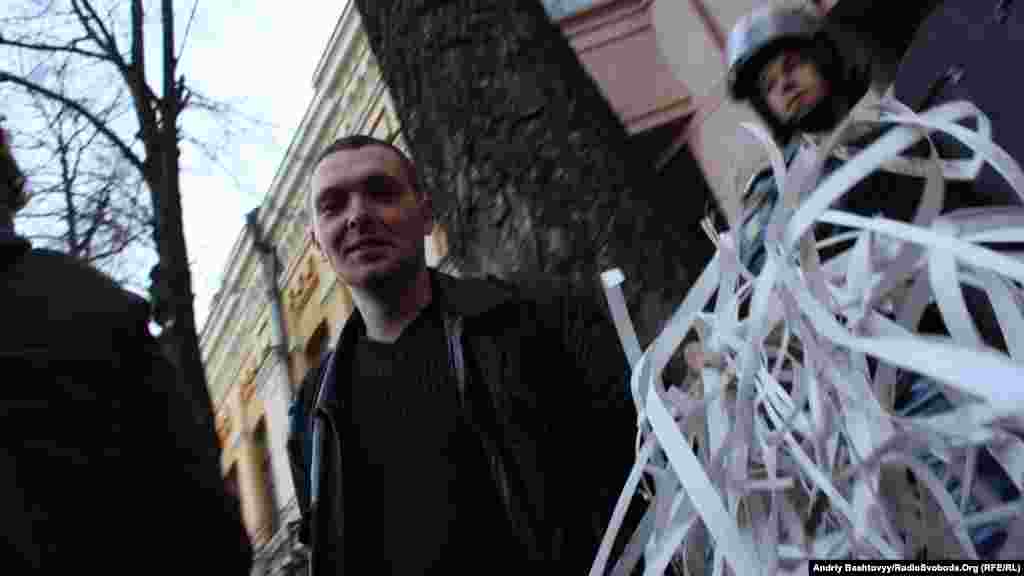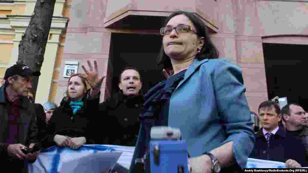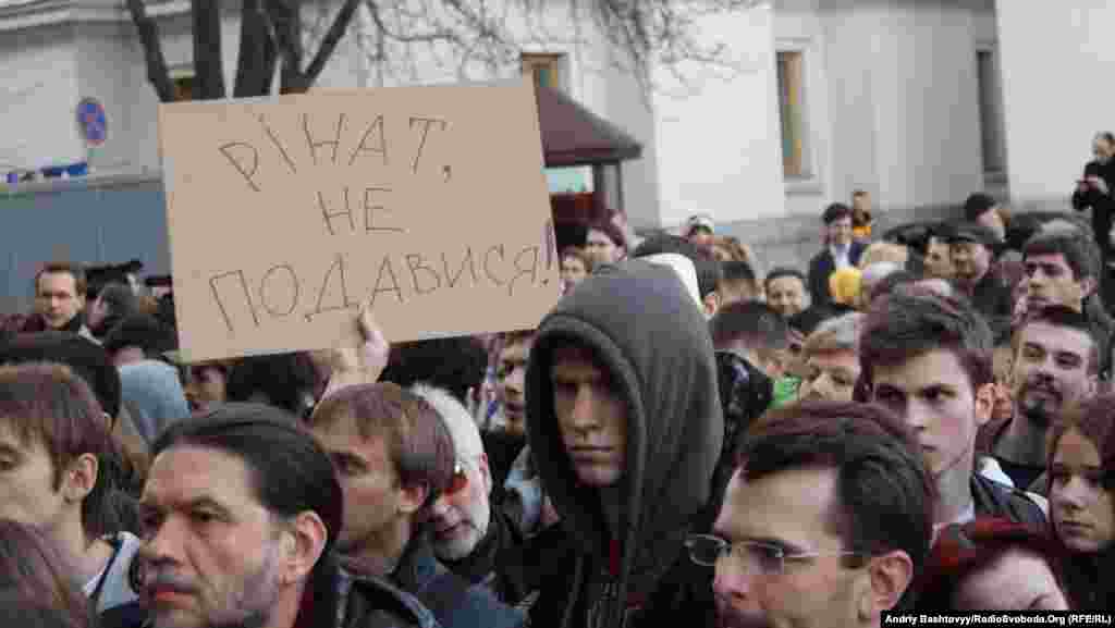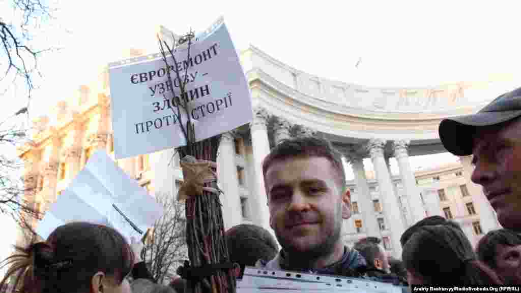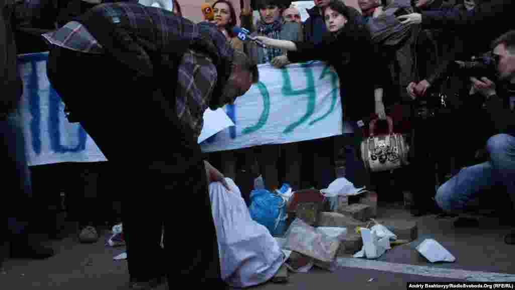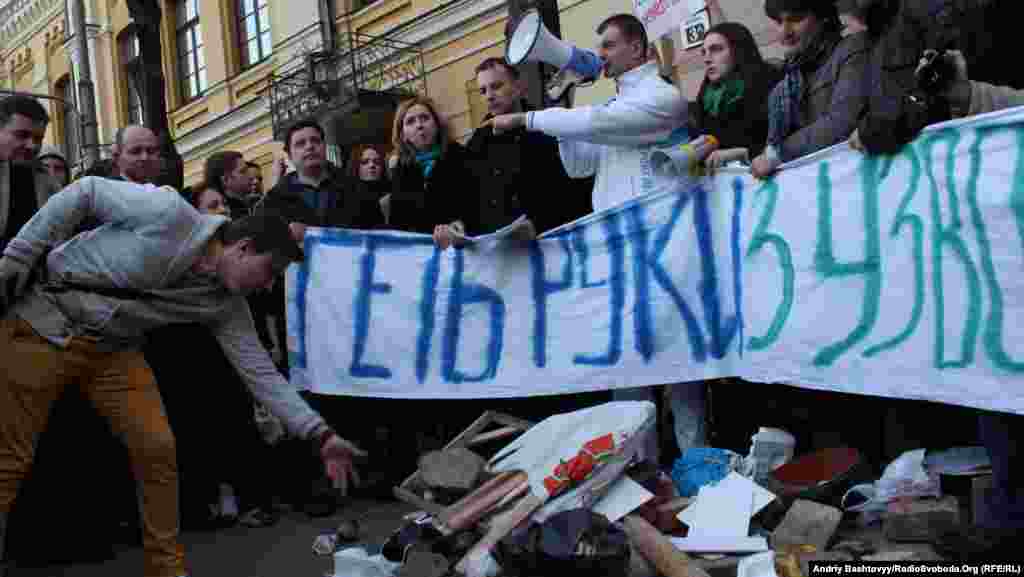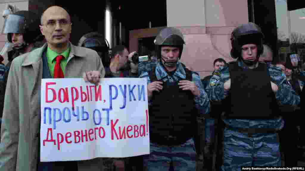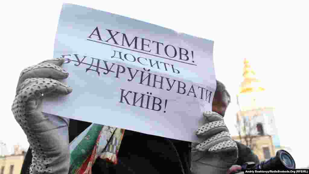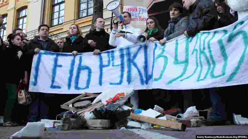 На знак протесту проти руйнування Андріївського узвозу кияни пікетували офіс компанії, що належить Рінату Ахметову і займається будівництвом на вулиці митців.