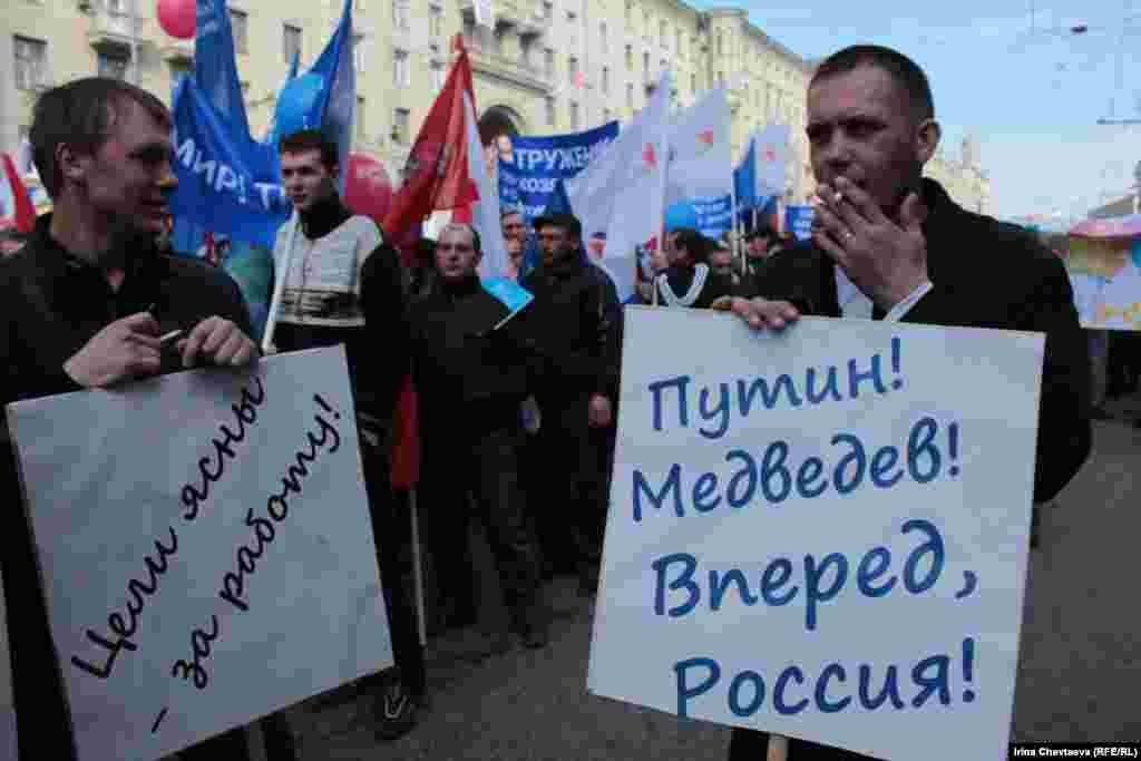 Президент Росії Дмитро Медведєв і обраний глава держави, чинний прем’єр-міністр Володимир Путін очолили колону, за їхніми спинами були плакати «Люди праці за Путіна і Медведєва», «Прийшла весна – болото висохло». За оцінками правоохоронців, в акції взяли участь 120 тисяч осіб.