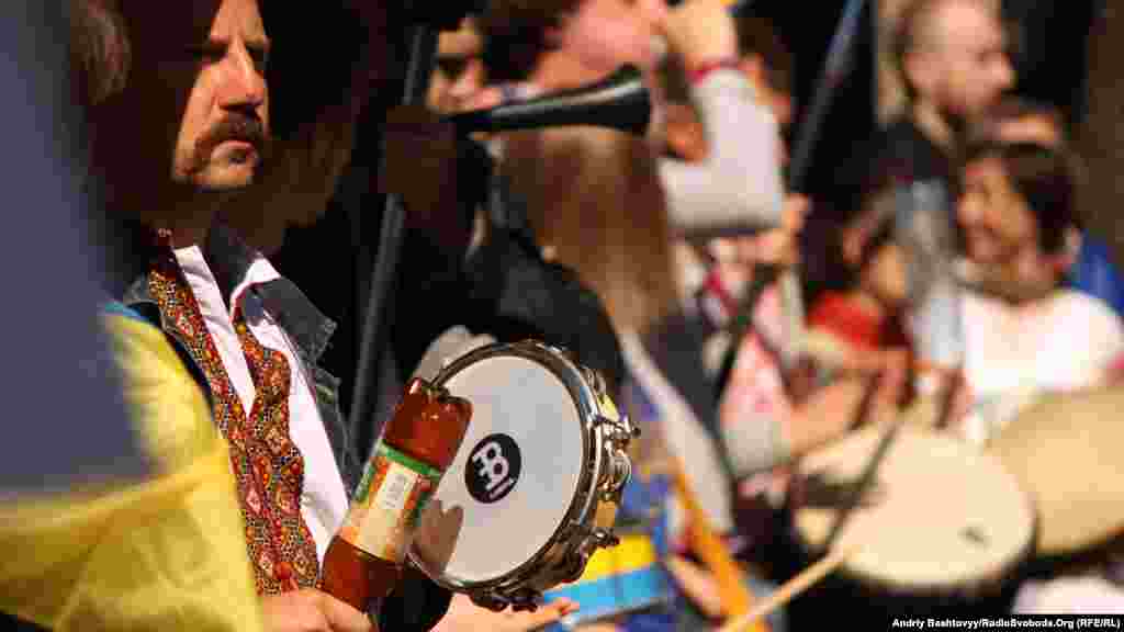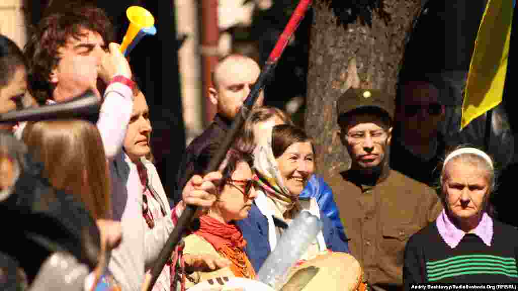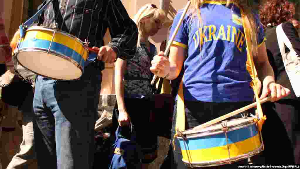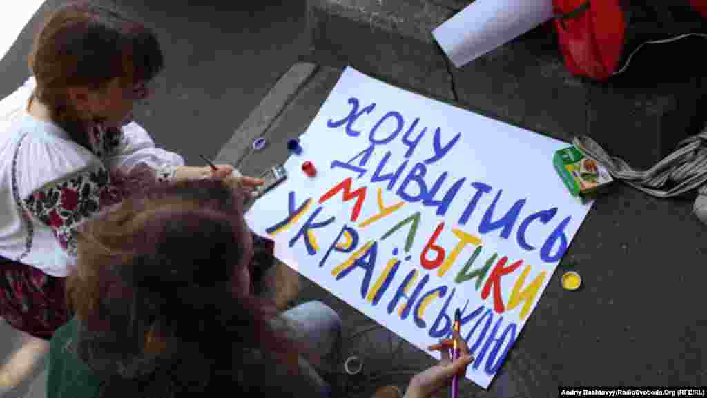 Близько 500 людей протестують біля будівлі Верховної Ради України проти розгляду й ухвалення законопроекту, розробленого депутатами Партії регіонів про основи мовної політики.