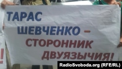 Комуністи, «свободівці» та представники молодіжної націонал-патріотичної громадської організації під стінами муніципалітету вигукували у мегафони. У комуністів було міцніше звукопідсилююче обладнання, а у членів Спілки української молоді на озброєнні були ще й футбольні вувузели. В такій звуковій какофонії перемішувалися заклики противників і прибічників мовного закону.