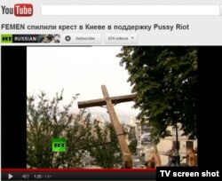 Сайт руху FEMEN повідомив: «У день винесення вироку жіночий рух FEMEN висловлює підтримку і повагу своїм російським колегам з групи Pussy Riot. На знак солідарності з жертвами кремлівсько-попівського режиму FEMENки звалили поклінний хрест над Майданом незалежності».