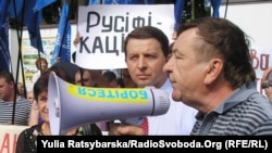 «Противно, коли ображають людей. Це наступ на мову, на людей, які живуть в Україні і хочуть чути українську мову», – сказала Радіо Свобода учасниця акції протесту.