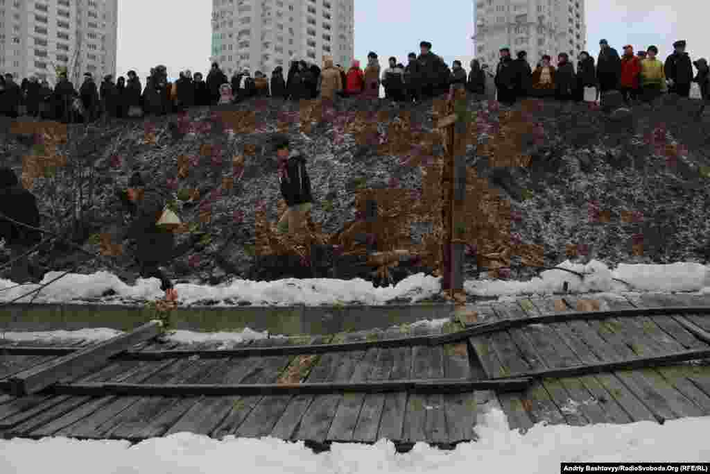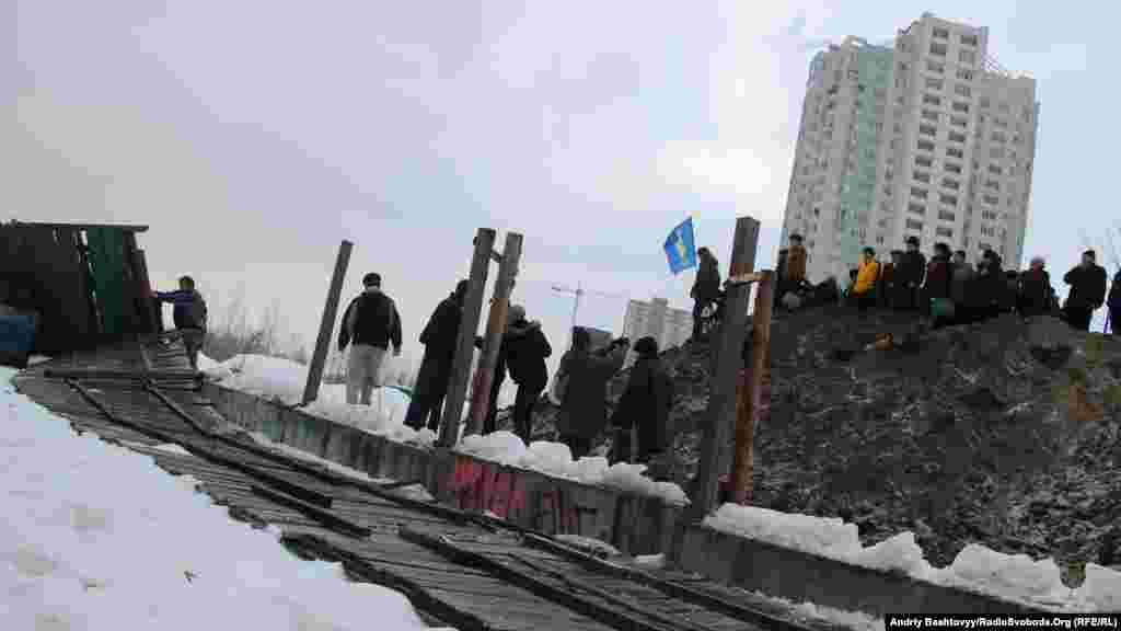 Громадські активісти демонтували паркан навколо будівництва біля озера Тельбін, що на Березняках у Києві.