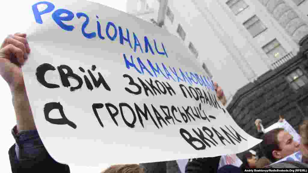 Учасники акції скандували «Азаров у Кабміні – освіта у руїні», «Азарову освіта – як мертвому кобіта», «Бунтуй! Кохай! Права не віддавай!».
