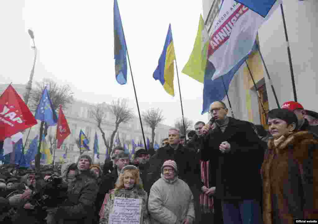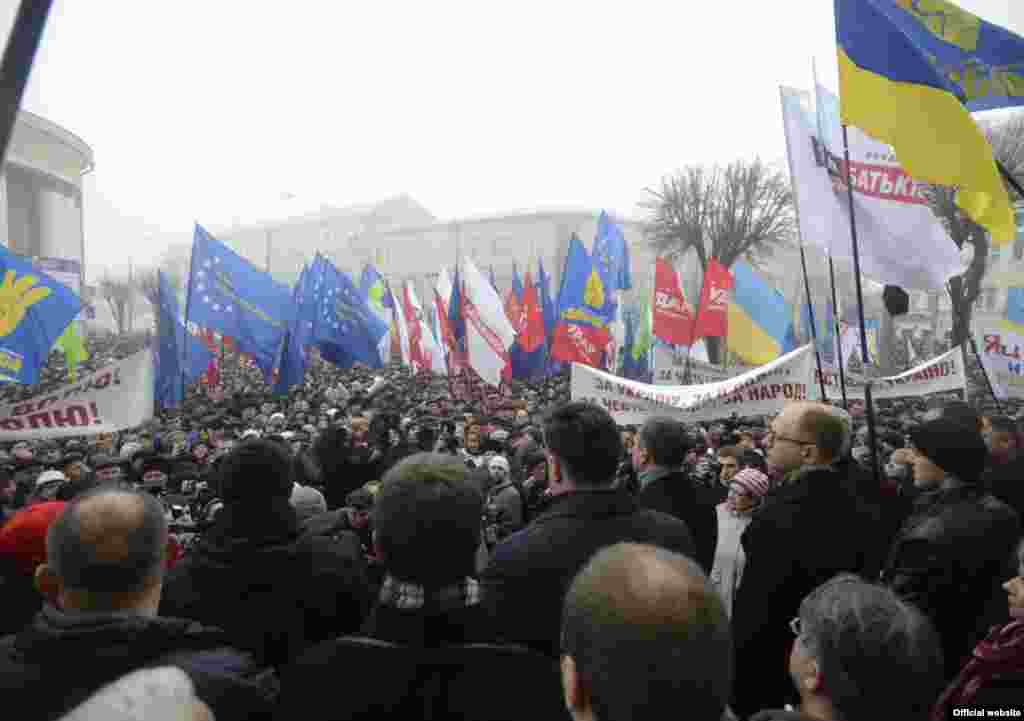 Опозиція розпочала акцію «Вставай, Україно!» з Вінниці. Головні вимоги – відставка президента Віктора Януковича та боротьба за соціальні та економічні права. Перед початком мітингу опозиціонери заявили, що в місті розповсюдили фальшиві листівки про перенесення віча. (Фотографії з сайту ВО «Батьківщина»)