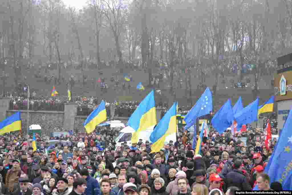 У Києві триває Євромайдан. За даними опозиції, сьогодні до нього додучилось понад 100 тисяч людей.