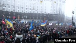 Після цих закликів, згорнувши партійні прапори, мітингувальники з Європейської площі рушили колоною до майдану Незалежності. Колона тимчасово перекрила рух Хрещатиком. Біля майдану Незалежності одразу ж вишикувалися кілька сотень міліціонерів. Утім, за 20 хвилин, коли маніфестанти, що прийшли з Європейської площі, змішалися з тими, хто вже був на майдані Незалежності, міліціонери повернулися до своїх автобусів, що чергують на вулиці Городецького.