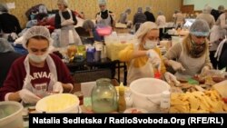 Робота кипить. Дівчата нарізають бутерброди, фрукти та постійно співають українські народні пісні. Процес завмирає лиш на мить – кухня виконує український гімн. Потім – молитва. І знову до роботи.