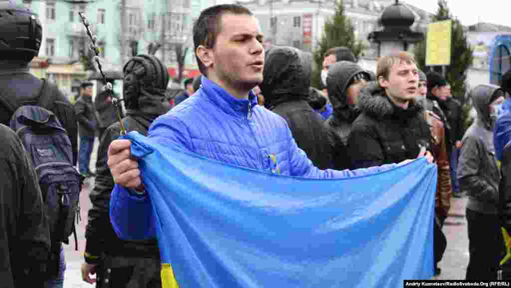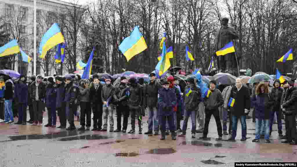 Біля пам’ятника Тарасу Шевченку у Луганську проукраїнські сили провели мітинг за єдність України, який зібрав кількасот людей.