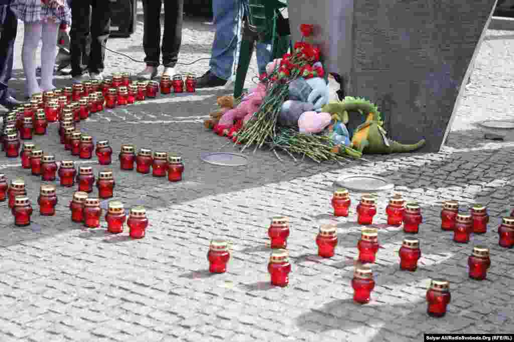 У Києві біли пам'ятника жертвам тероризму діти запалили лампадки, поклали квіти та випустили голубів, щоб вони принесли мир на нашу землю. Цього дня виповнилось 13 років від терористичного акту в США 11 вересня 2001 року.