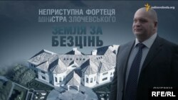 Тиждень тому у програмі «Схеми» ми показали маєток екс-міністра екології уряду Азарова Миколи Злочевського. Відзначили його любов до лицарів, фонтанів і симетрії. Дві однакові «фортеці» розташовані дзеркально. На території є лазня і гараж. Та ми звернули увагу на те, що окрім приватної землі, екс-міністр огородив високим парканом ще й 7 гектарів державного лісу. І з’ясували, що зроблено це було за особистим розпорядженням колишнього керівника Київщини Анатолія Присяжнюка. Ліси в користування пана Злочевського дісталися фактично за безцінь. І аж на півстоліття.