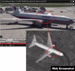 На вихідні російський телевізійний «Перший канал» продемонстрував буцімто «доказ» того, що малайзійський «Боїнг» рейсу Амстердам – Куала-Лумпур був збитий реактивним винищувачем, що переслідував його. Цей доказ на «Першому каналі» назвали знімком із супутника. Але, як виявилось, це фотоколаж.