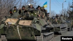 Українські військові залишають Дебальцеве Донецької області під постійним обстрілом, повідомив Радіо Свобода польський журналіст Павел Пеньонжек, який працює на Донбасі.