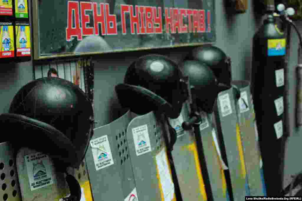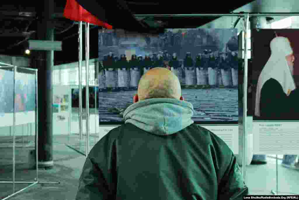 На експозиції площею 1000 квадратних метрів розміщені артефакти з Майдану: каски, саморобні щити, найяскравіші фотографії з минулорічної зими, а також докази російської агресії на Сході України. На виставці представлені фото Сергія Мельникоффа, Андрія Гузенка та Олександра Клименка. Організатори експозиції - партія «Конгрес українських націоналістів», Альянс Балто-Чорноморських Націй та Музей Плакату.