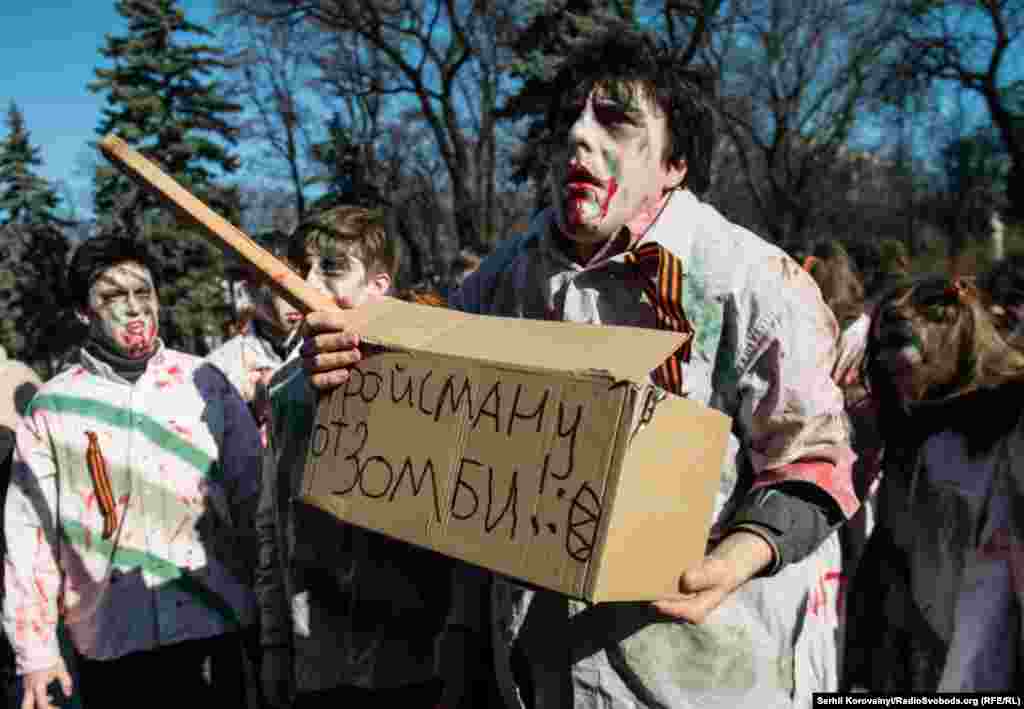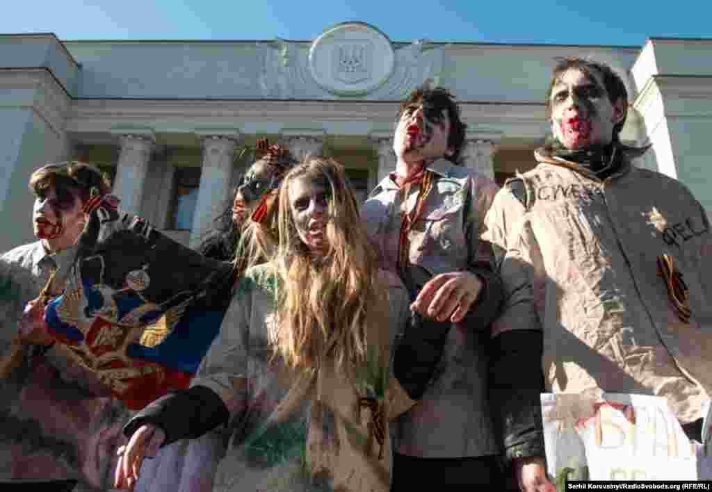 Біля Верховної Ради відбулась акція «Зомбі вимагають від Гройсмана не підписувати закон про заборону російської телепропаганди». Активісти громадянського руху «Відсіч», волонтери та небайдужі громадяни прийшли до голови Верховної Ради Володимира Гройсмана з вимогою негайно підписати Закон №1317 «Про внесення змін до деяких законів України щодо захисту інформаційного телерадіопростору України», який має суттєво обмежити показ ворожих російських фільмів.