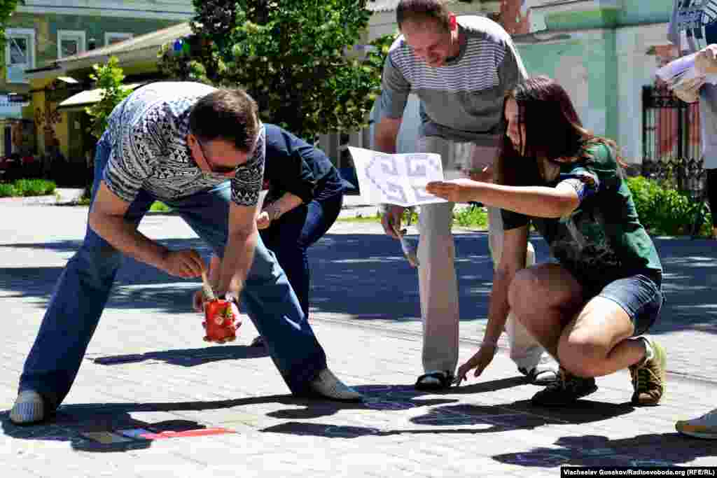 «Це – ініціатива з народу. Усе почалося з фейсбук-повідомлення херсонської журналістки Ірини Євстфьєвої, яка побачила у соцмережах інформацію про такі акції в інших містах і пожалкувала, що нічого подібного не проводиться у Херсоні. Завдяки соцмережам ми домовилися, разом придбали фарбу», – розповіла учасник акції Євгенія Міроненко.