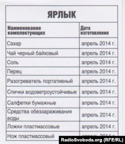 Есть еще один вариант рациона. На коробке он подписан как чай, сахар, кофе, повидло, напиток.