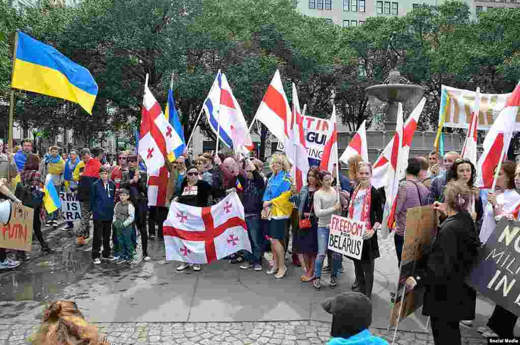 До приїзду президента Росії Володимира Путіна в Нью-Йорк для участі в Генеральній асамблеї ООН і зустрічі з Бараком Обамою приурочені акції протесту проти нинішньої політики Кремля, насамперед щодо України
