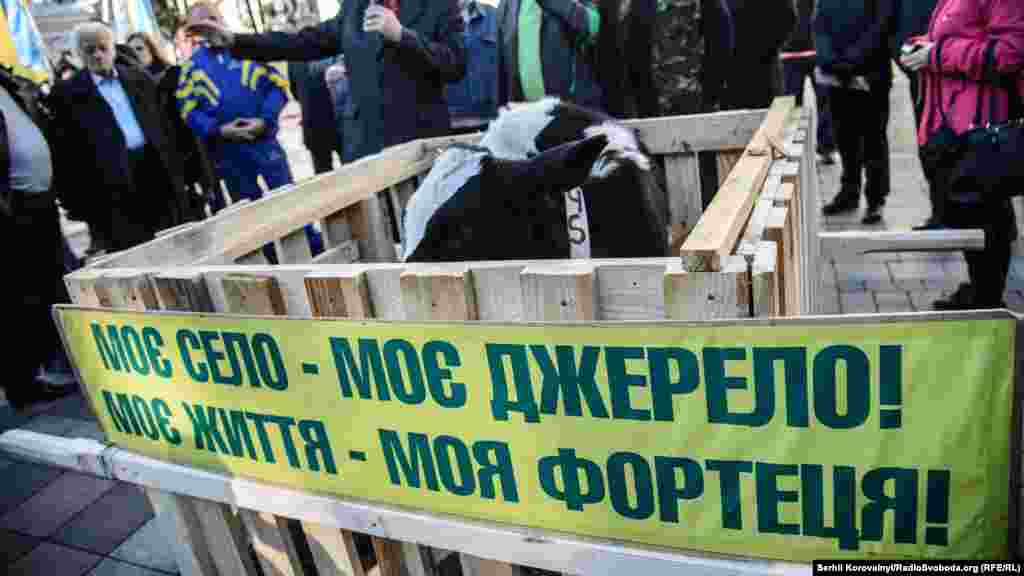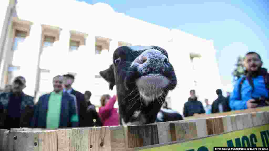 Разом з аграріями під Верховну Раду прийшла теличка (фотогалерея)