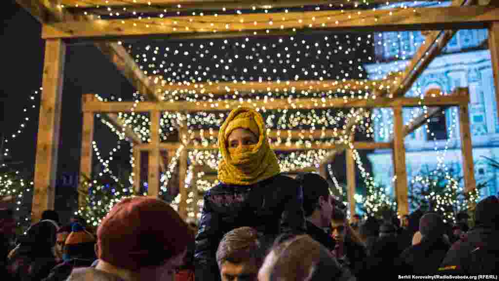 У день Святого Миколая в центрі столиці відкрився святковий простір «Новий рік між двома дзвіницями», а перша леді Марина Порошенко та мер Києва Віталій Кличко урочисто запалили головну ялинку країни.