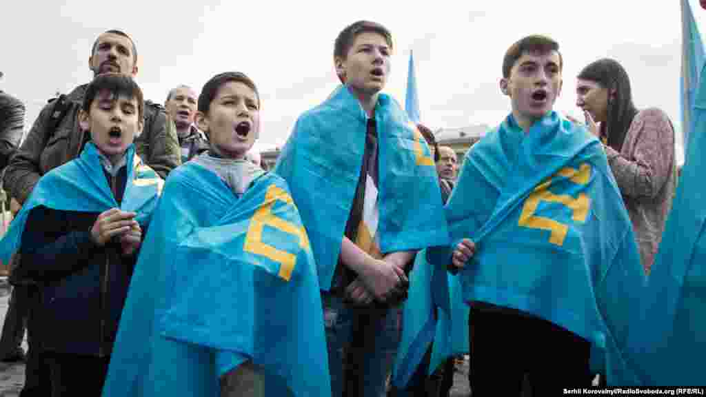 Близько тисячі українців зібралися на головній площі столиці. Серед них були як кримські татари і українці, так і представники інших національностей