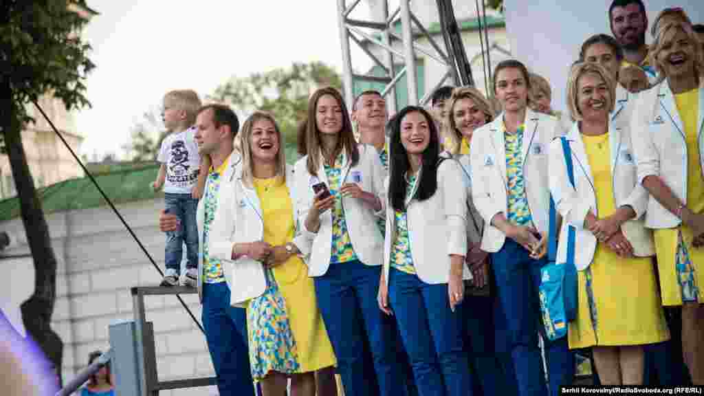 В Києві відбулися проводи збірної України на ХХХІ літні Олімпійські ігри, що відбудуться в бразильському Ріо-де-Жанейро. Атлети пройшли центром міста до Софійської площі, де на них чекали сотні шанувальників спорту. Вболівальники зустріли спортсменів оваціями.