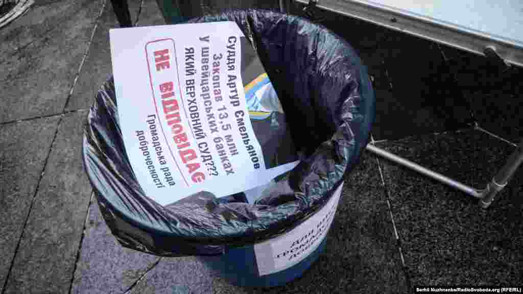 7 грудня активісти групи «Реанімаційного пакету реформ» та Всеукраїнського об’єднання «Автомайдан» провели акцію «Доброчесність у смітник?», що відбулася біля будівлі комітетів Верховної Ради України. Громадські організації вимагали надати Громадській раді доброчесності реальні правові механізми для виконання її функцій, включивши відповідні положення у законопроект «Про Вищу раду правосуддя».
