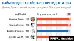 Нагадуємо: Дональд Трамп вступає на пост у найбільш поважному віці. Радіо Свобода створило інфографіку про найстарших та наймолодших президентів США.