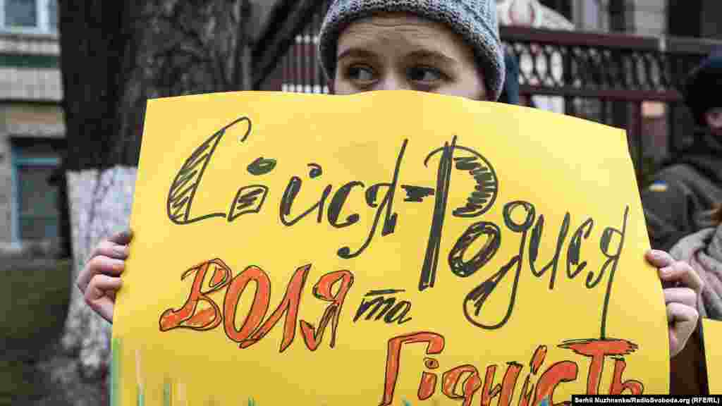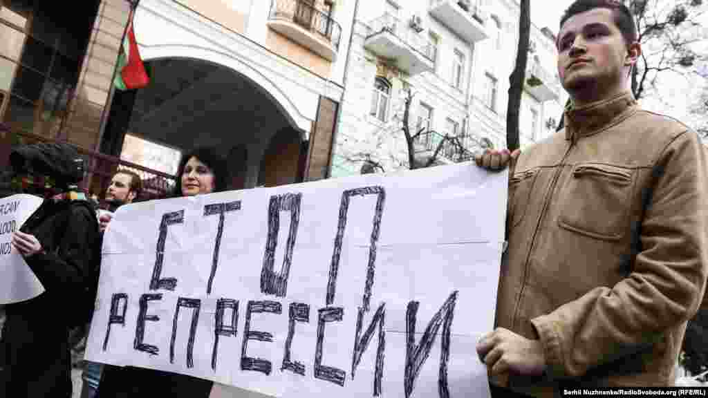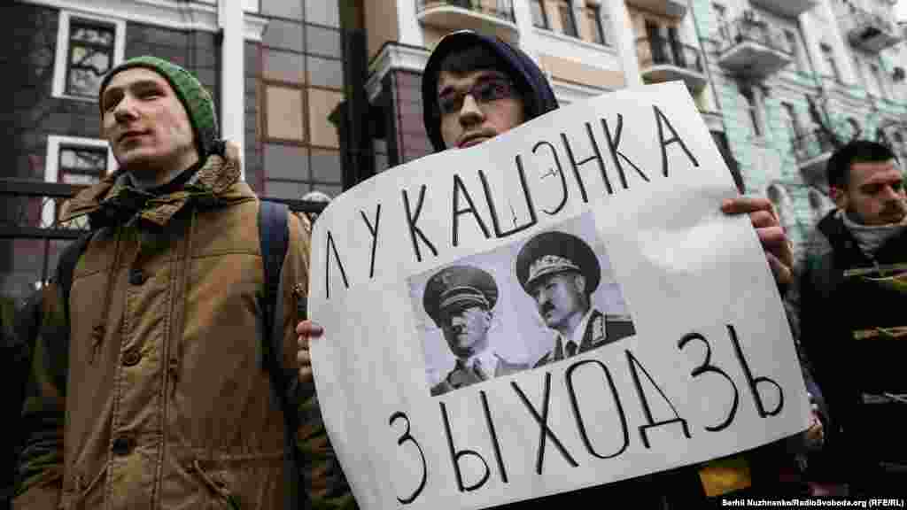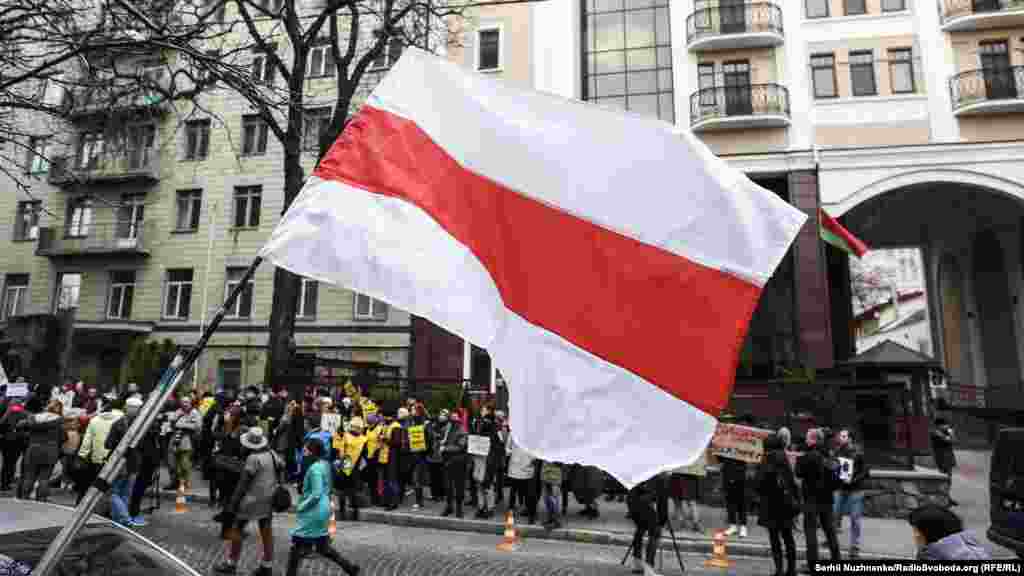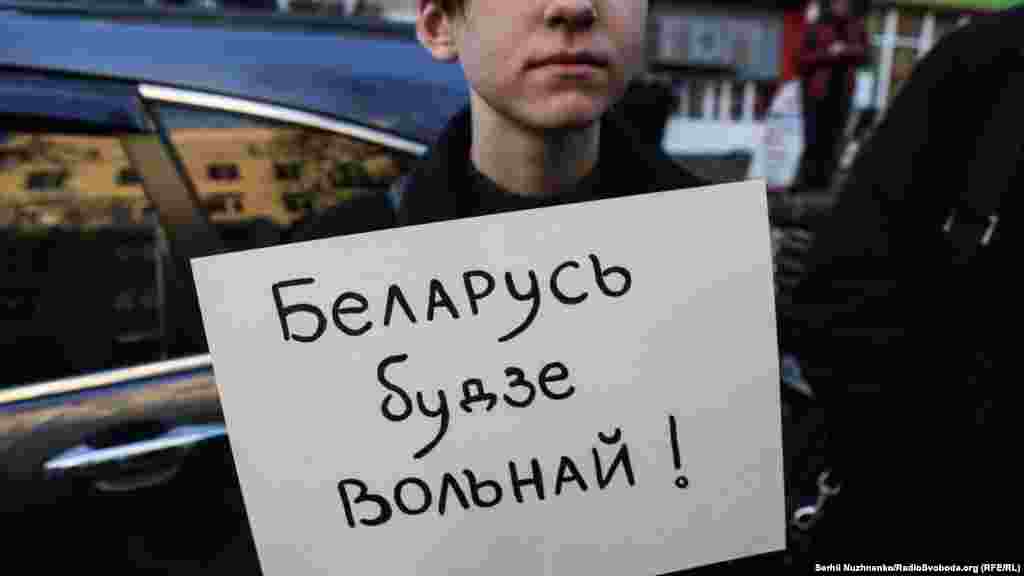 У Києві біля посольства Білорусі відбулася акція на підтримку затриманих в Мінську під час святкування Дня Волі 25 березня.