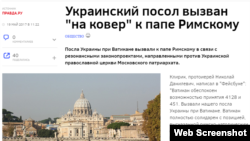 Видання «РБК» повідомило з цього ж приводу, що Ватикан не підтвердив повідомлення про виклик українського посла на прийом до папи Римського.