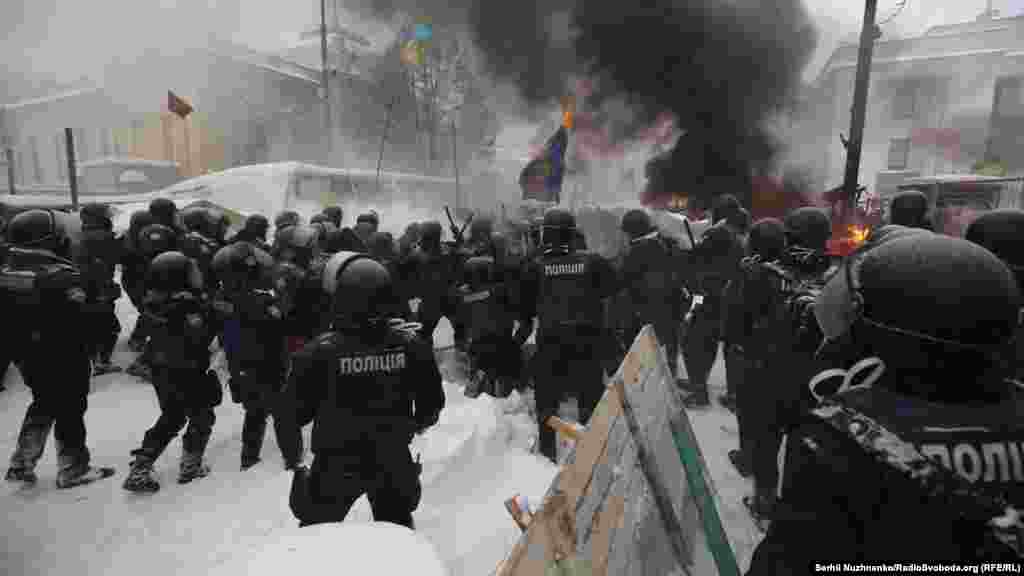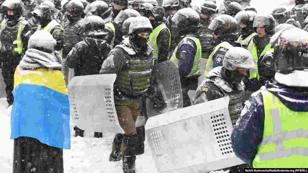 Поліція доставила до відділків понад сотню людей під час «слідчих дій» біля будівлі Верховної Ради. У прес-службі Національної поліції повідомили, що операція правоохоронців проводилась у рамках кримінальних проваджень, одне з яких відкрито за фактом спроби захоплення Міжнародного центру культури і мистецтв (Жовтневого палацу), а інше стосується подій біля стін Верховної Ради, які відбулися 27 лютого. Окрім того, як повідомлялось, зараз розпочато кримінальне провадження за статтею 345 Кримінального кодексу України («погроза або насильство щодо працівника правоохоронного органу»). У поліції заявили, що під час проведення слідчих дій на території наметового містечка біля Верховної Ради правоохоронці вилучили дев’ять гранат РГД-5, запали, «коктейлі Молотова» та п’ять димових мін.