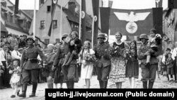 Дивлячись на такі випадки, історики нагадують про нацистську окупацію частини Чехословаччини 1938 року. Тоді судетські німці теж заявили про «возз’єднання з матір’ю-Батьківщиною». Вони виходили на вулиці з квітами, свастиками і фотографувалися з солдатами армії Гітлера.