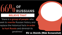 Згідно зі свіжим опитуванням Всеросійського центру вивчення громадської думки (ВЦИОМ), 66% респондентів погоджуються із твердженням, «що є група людей, які прагнуть переписати російську історію та підмінити історичні факти, щоб зашкодити Росії та зменшити її велич», пише сайт EU vs Disinfo.