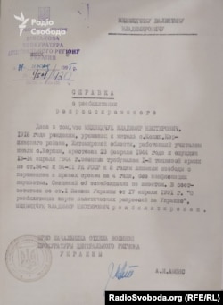 Продовжуючи роботу з архівними документами, що стосуються справи Володимира Медведчука, Радіо Свобода вже після публікації цього матеріалу натрапило на заяву, яка свідчить про те, що його син Віктор таки звертався за довідкою про реабілітацію батька.
