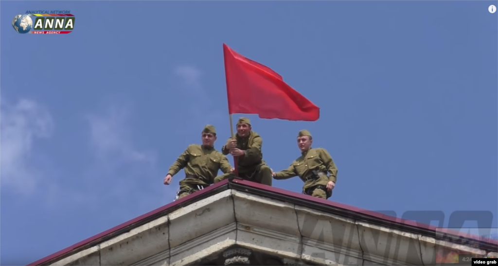 Медіа угруповань «ЛДНР» демонструюють реконструкцію «взяття Рейхстагу» в окупованому Луганську