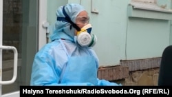 Кілька разів на день медичному персоналу доводиться одягати і знімати захисний костюм, а це окуляри, маску, фартух, чохли на ноги, коли привозять людину з підозрою на захворювання коронавірусною інфекцією COVID-19.