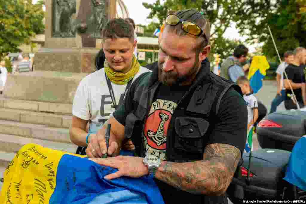 Потьомкінські сходи і пам’ятник Дюку де Рішельє стали місцем зупинки 60 українських байкерів в Одесі. 20 липня вони виїхали з Ужгорода і через 6 тисяч кілометрів мають приїхати на острів Хортиця. Це четвертий «Мотопробіг Єдності», кажуть організатори. Цього року байкери проїдуть через 54 українські міста – на 20 більше, аніж минулого року. 1 серпня вони заїдуть на Чонгар для передачі кримськотатарського прапора в анексовану нині Росією Автономну Республіку Крим.