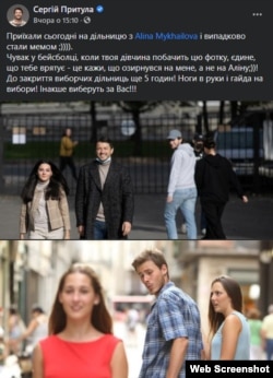 Прийшовши вранці 25 жовтня на одну зі столичних дільниць, кандидат у мери Києва від «Голосу» Сергій Притула встиг не лише проголосувати, але й ненароком відтворити у житті відомий багатьом інтернет-мем.