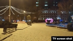 На центральній площі напис – «Я люблю Сніжне», Ялинки не видно, проте стоїть пам'ятник Леніну. І не простий, а золотий. Золотого кольору.