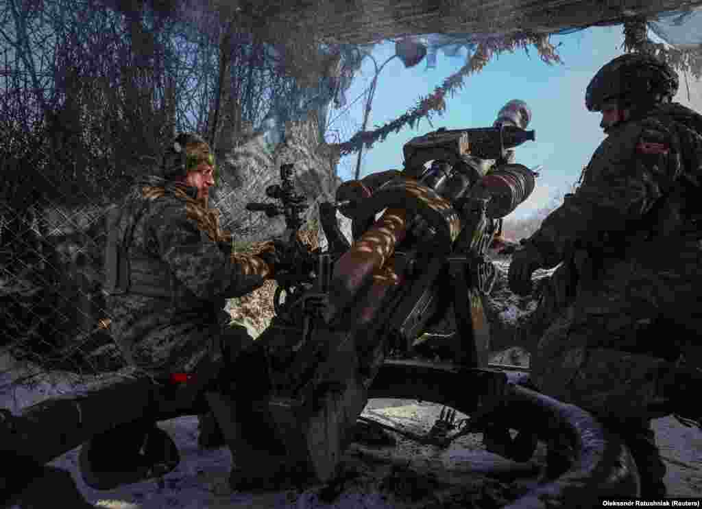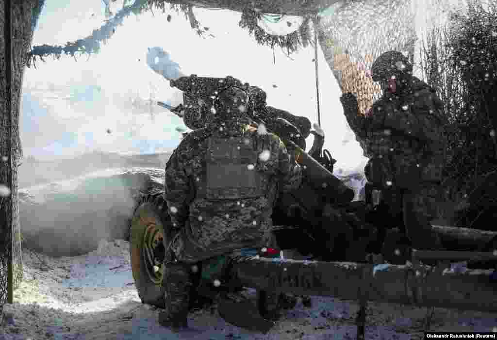 Українські військові ведуть вогонь по російських позиціях під Мар'їнкою