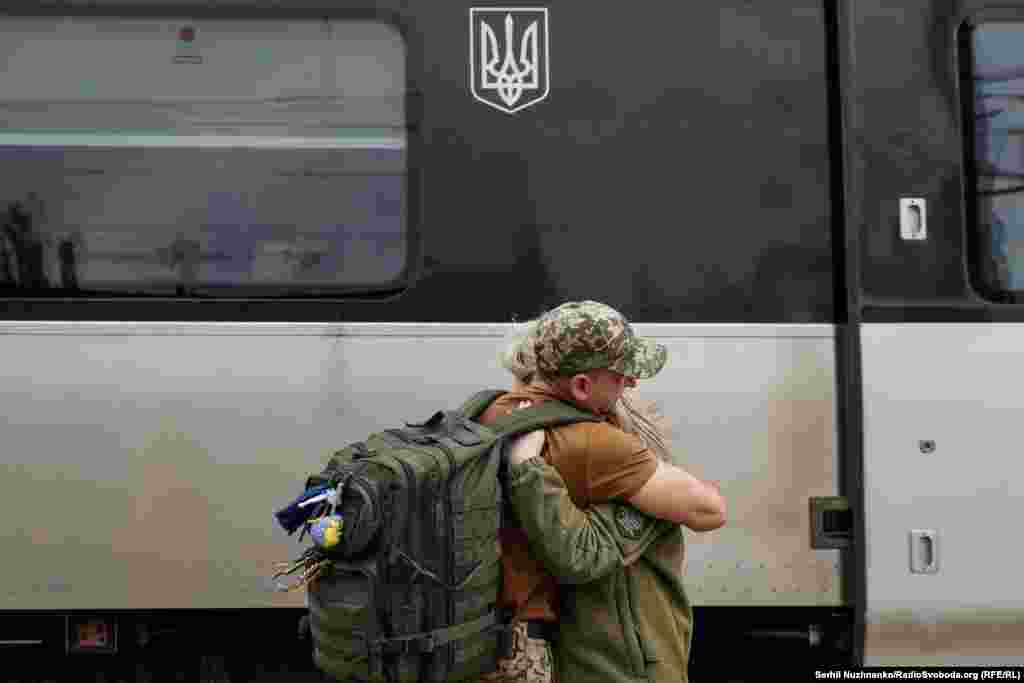 Залізничний вокзал у Краматорську – місце зустрічі військових із рідними. Солдати знаходять кілька днів, а то й годин, щоб побачитися з сім'ями або друзями. Тут близькі люди розділяють моменти радості зустрічі, і смуток прощання. Фотокореспондент Радіо Свобода зазнімкував щемливі миті зустрічі та прощання українських військових з їх рідними на вокзалі Краматорська. Більше – дивіться у фотогалереї.