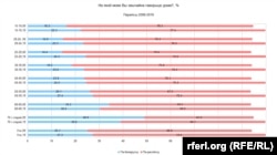 Як і в ситуації з освітою, незмінність загальної чисельності еквівалентна різним змінам у різних вікових групах.
