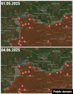 Якщо з лютого по квітень російська армія захоплювала в середньому 170 квадратних кілометрів щомісяця, то в травні темпи російського наступу зросли більш ніж у два з половиною рази – до 457 квадратних кілометрів окупованої території щомісяця. Це відповідає показникам кінця 2024 року.