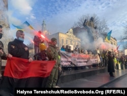 День Гідності та Свободи у Львові вшанували ходою центральними вулицями міста, в якій взяли участь майданівці, волонтери, активісти, політики.